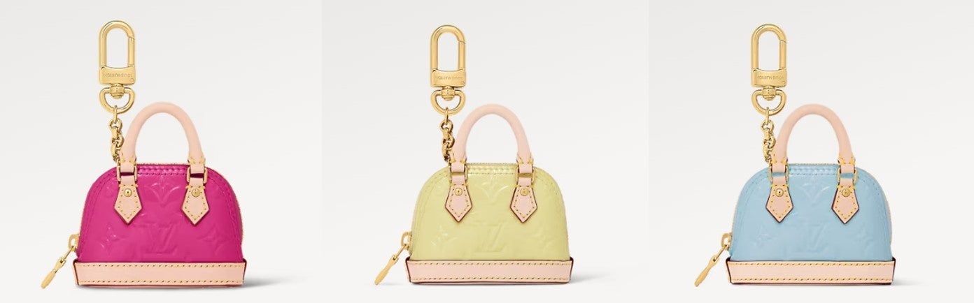ルイ・ヴィトンが誇る卓越したレザー加工技術を駆使し、ミニチュアサイズで表現した「バッグチャーム・ミクロ アルマ」。モノグラム・パテント レザーを使用し、ファスナースタイルの開口部とハンドルの精緻なディテールが特徴のバッグ「アルマ」を丁寧に再現しました。あらゆる装いに、遊び心とカラフルなアクセントを加えるアイテムです。ハンドバッグやベルトループに簡単に取付けられるスナップフック付き。