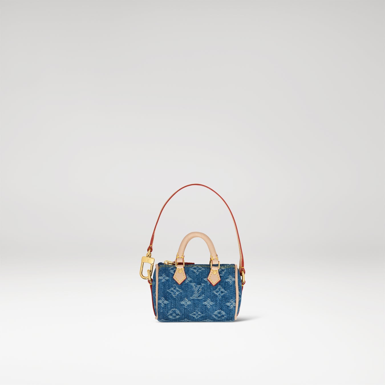 クラシカルなバッグ「スピーディ」を完璧なミニチュアサイズで表現した愛らしい「バッグチャーム・ミクロ スピーディ」。トレンディなモノグラム・デニム キャンバスを使用し、スナップフックからハンドルの細かいステッチまで、非常に精緻なディテールで仕上げました。遊び心溢れる雰囲気でイヤホンなどの小物を持ち運べるアイテムは、バッグやベルトに取付ける装飾としても楽しめます。