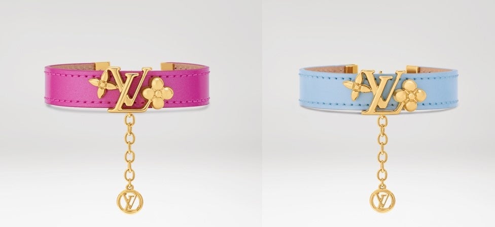 洗練されたデザインの「ブレスレット・LV グラム」。メゾンのアイコニックな3つのディテールが目を引きます。幅広のレザーストラップにはゴールドカラーのメタルで象ったLV イニシャルをあしらい、2種類の精巧なモノグラム・フラワー モチーフを添えました。イブニングシーンの装いにグラマラスな個性を添える、エレガントでフェミニンなブレスレットです。