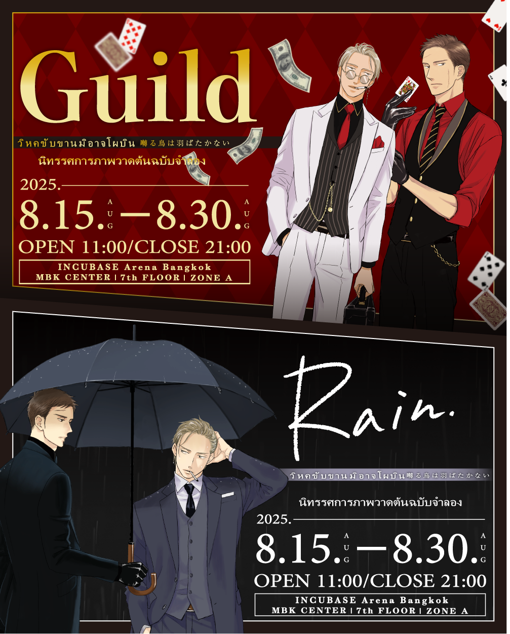 本イベントでは過去にマンガ展にて開催した『Guild ~囀る鳥は羽ばたかない コラボカフェ&複製原画展~』『Rain ~囀る鳥は羽ばたかない コラボカフェ&複製原画展~』にて販売したグッズの一部を再販いたします。