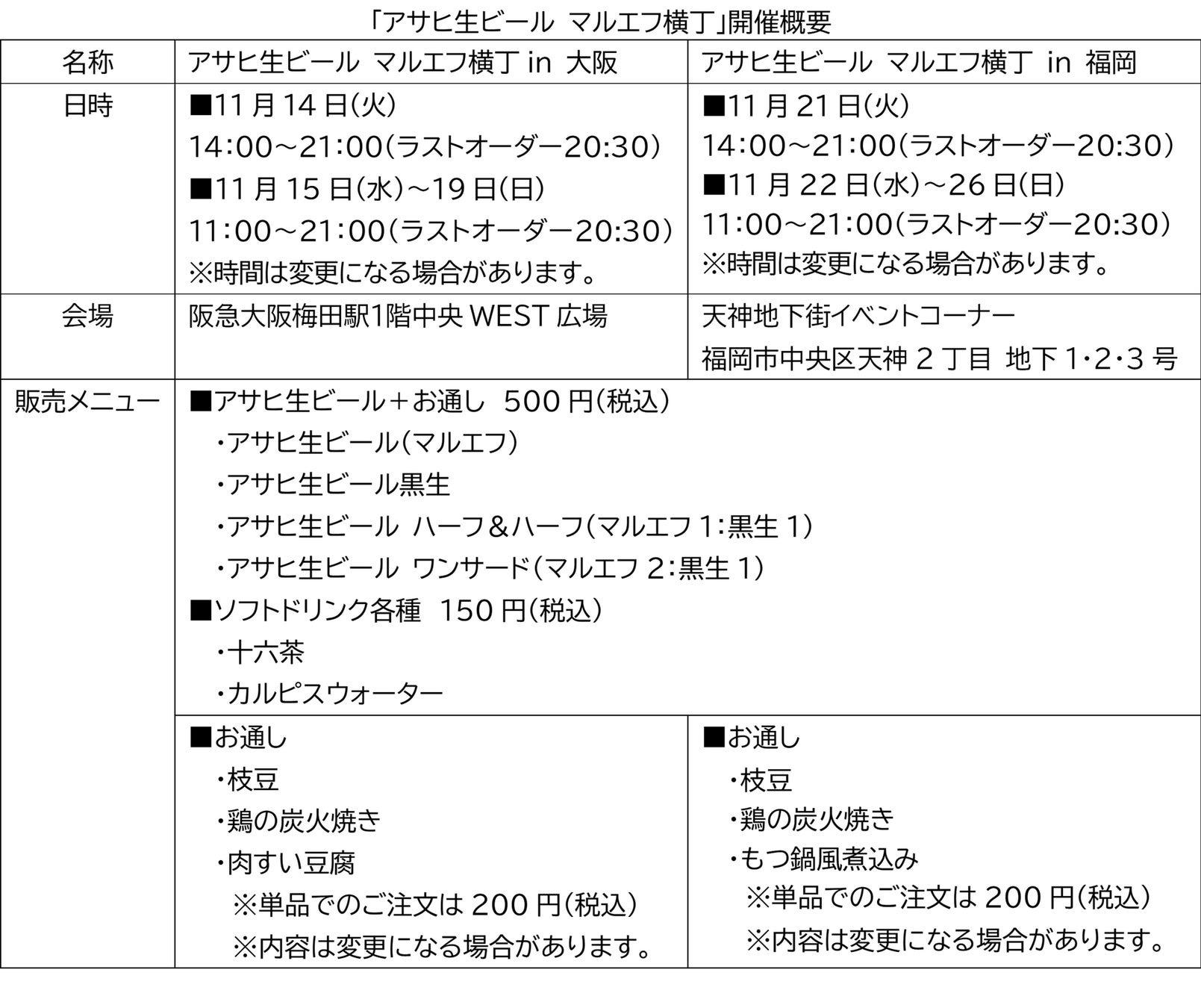 「アサヒ生ビール マルエフ横丁」を大阪と福岡で開催