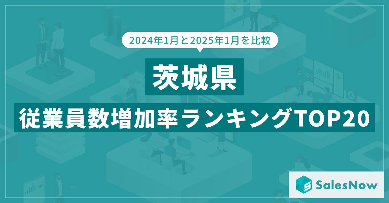 「誰もが活躍できる仕組みをつくる。」をミッションに掲げ、セールスチームの武器となるデータベース「SalesNow」を展開する株式会社SalesNow(本社:東京都渋谷区、代表取締役:村岡功規、以下「SalesNow」)は、国内550万社の企業情報を完全網羅した日本最大級のデータベース「SalesNow DB」より、茨城県に本社を置く企業の2024年1月時点および2025年1月時点の従業員数データを分析し、従業員数増加率ランキングTOP20を発表しました。本ランキングは、各企業の成長スピードを可視化するものであり、新規雇用の創出や事業拡大の動向を明らかにしています。