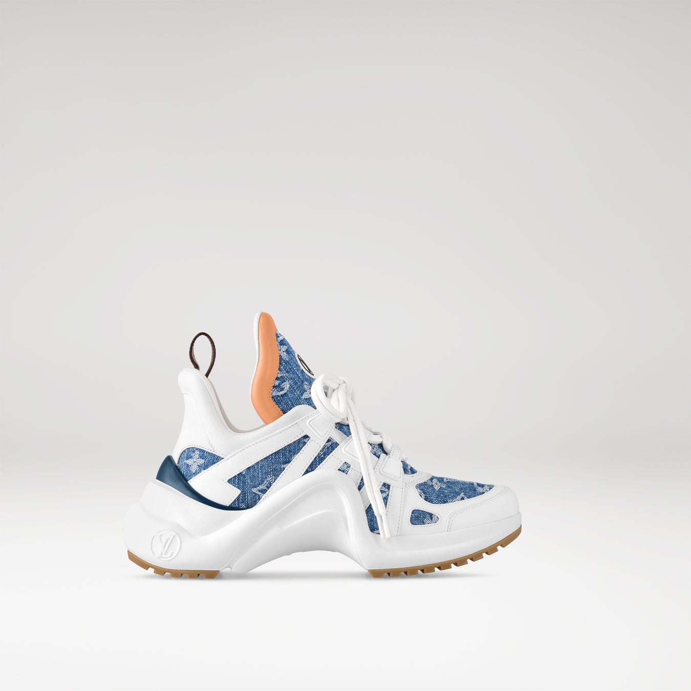ブリーチ加工を施したモノグラム・デニムに、ルイ・ヴィトンならではのヌメ革でトリミングを組み合わせてアップデートした「LV アークライト・ライン スニーカー」。メゾンのアイコニックなモデルを印象付ける、オーバーサイズのシュータンと弾力性のある波形アウトソールの両方に、LV サークルを添えました。