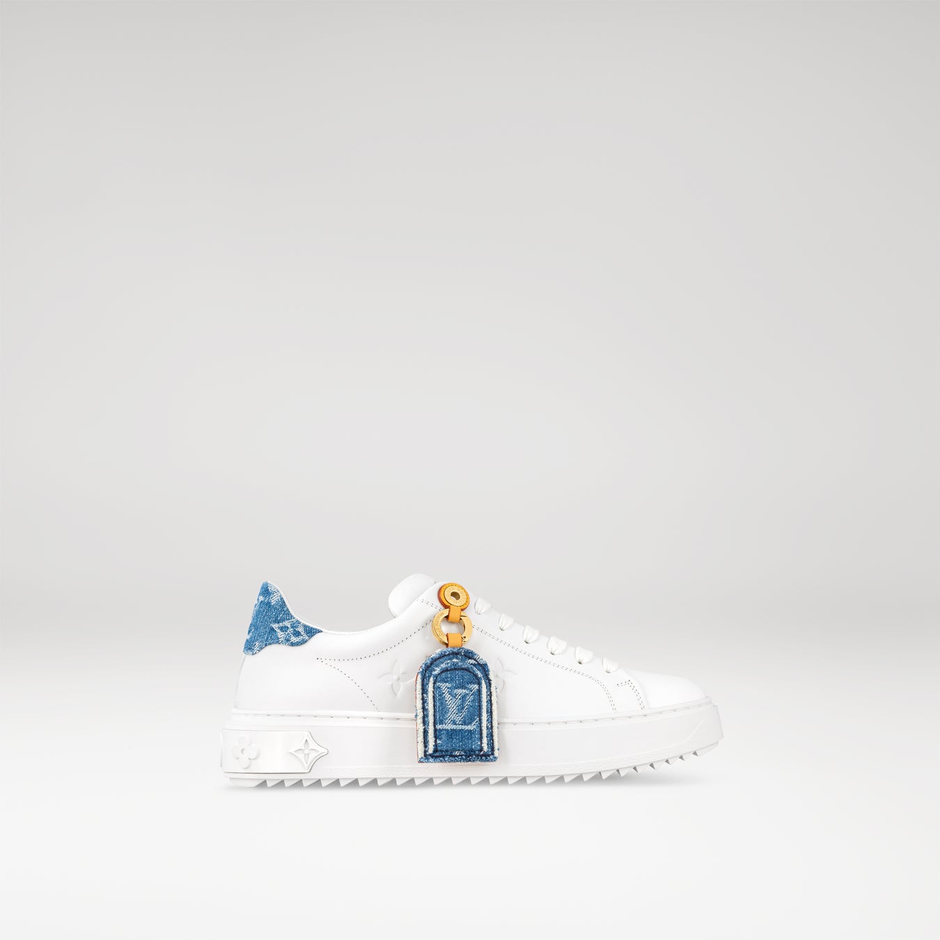 カーフレザーにモノグラム・デニムのディテールを添えてアップデートした「タイムアウト・ライン スニーカー」。今シーズンのレザーグッズとのコーディネートもおすすめです。ヌメ革のストラップでアッパーに取付けたデニムのラゲージタグが、ルイ・ヴィトンの旅の伝統を想わせます。刻印を施したゴールドカラーのアイレットやシュータンにエンボス加工したメゾンのシグネチャーなど、洗練されたディテールをあしらいました。