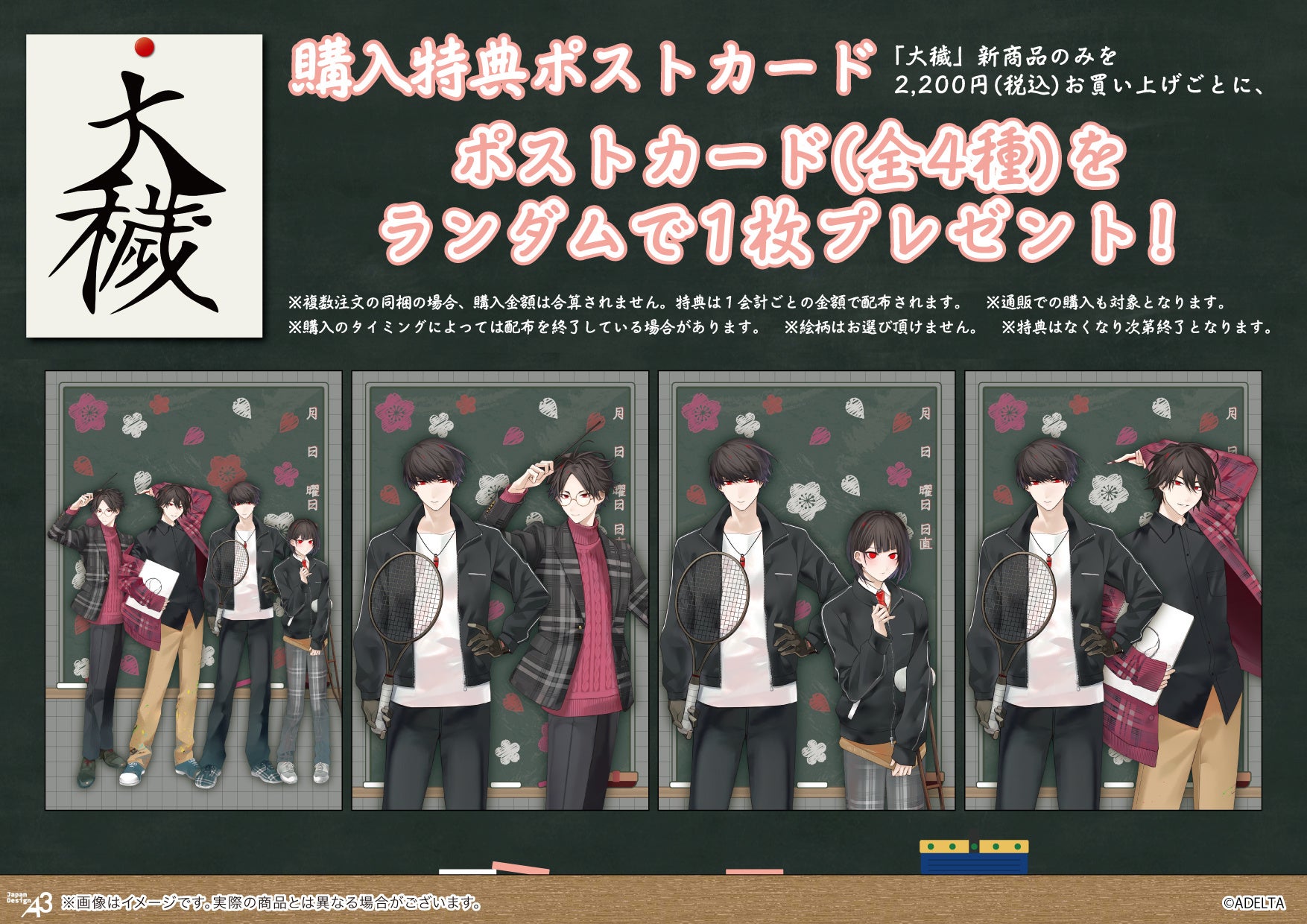 BLゲーム『大穢』の新作グッズが登場!“学園風ver.”の描き下ろし&ミニキャライラストはファン必見!!