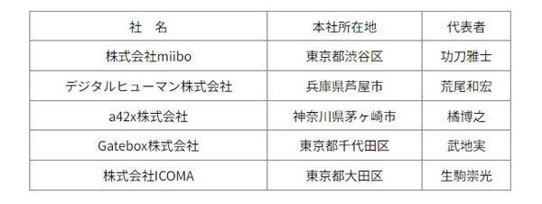 「SHARP Tech-Day」では、開発した「エッジAI」技術と下記の5社の技術を組み合わせ、AIパートナーやAIアバターなどに組み込み、展示します。シャープが描くAIの可能性を、ぜひ会場でご体感ください。