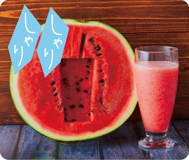 手作業で種を丁寧に取り除いた国産スイカの果肉と氷をミキシングすることで、スイカの食感をまさにそのまま味わうことができるジュースに仕上げました。