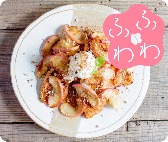 表面はサクッと中は溶けるような食感で甘さは控えめ。トッピングのりんご、アイスクリームと併せてお召し上がりください。