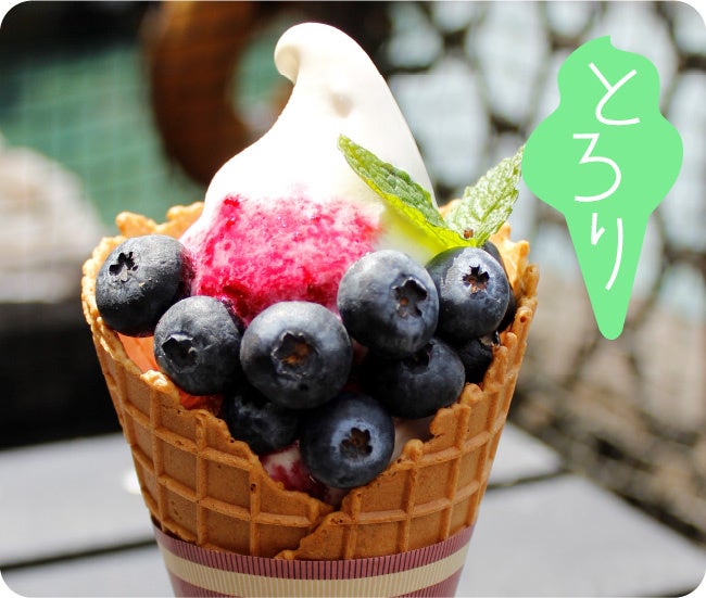ベースのソフトクリームは生乳60%、豊かなコクと控えめな甘さにブルーベリー風味が溶け合ってリッチでさわやかな風味がお口いっぱいに広がります。