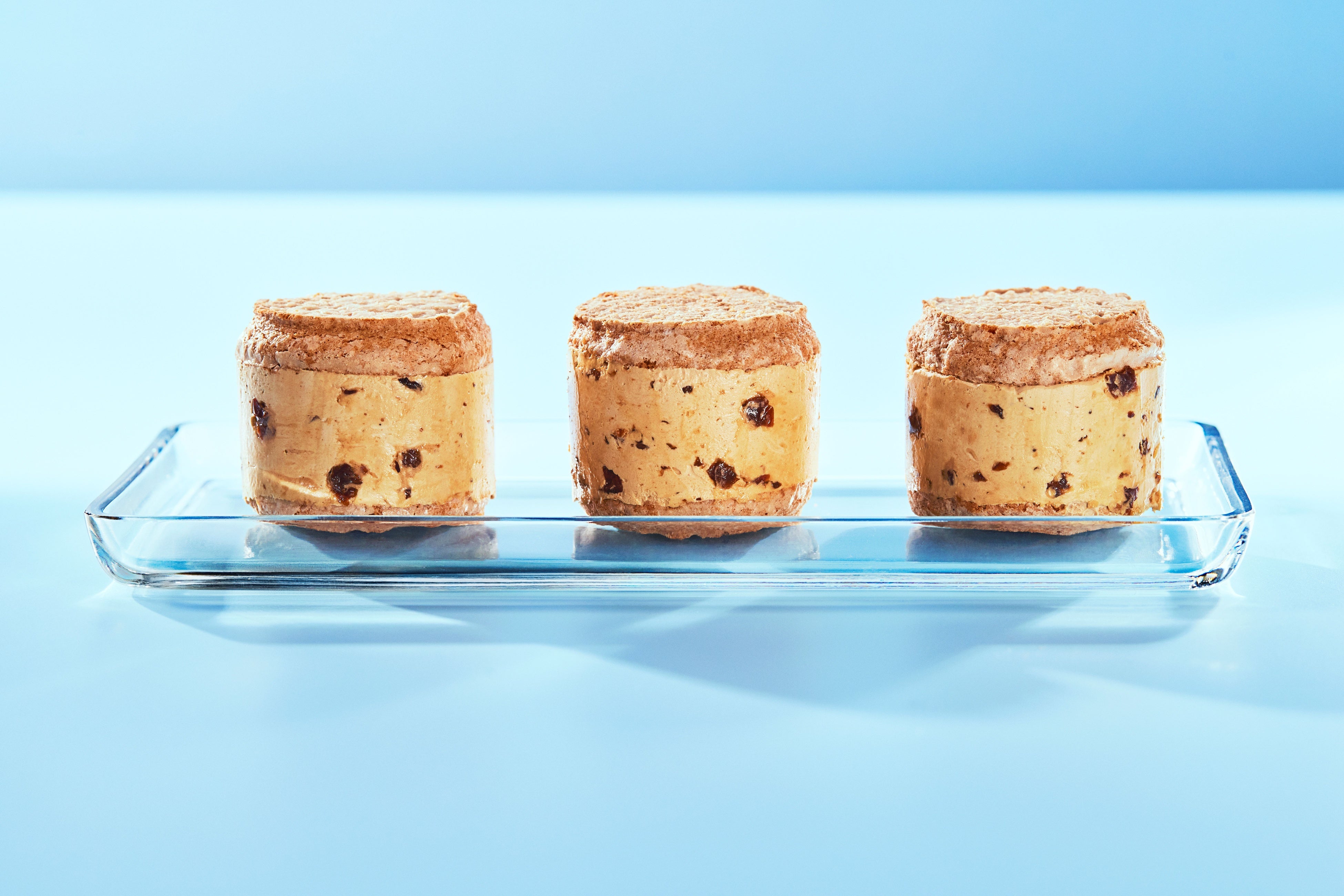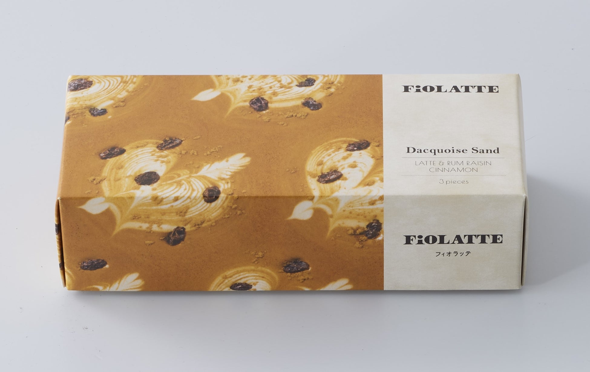 「ダックワーズサンド」は、ラムレーズンを練り込んだカフェラテ風味の発酵バタークリームを、ほんのりとシナモンが香るサクサクなダックワーズ生地でサンドしました。華やかなカフェラテの薫りのなかに、ラムレーズンとシナモンのアクセントが楽しめる、とても濃厚で贅沢なお味の逸品です。