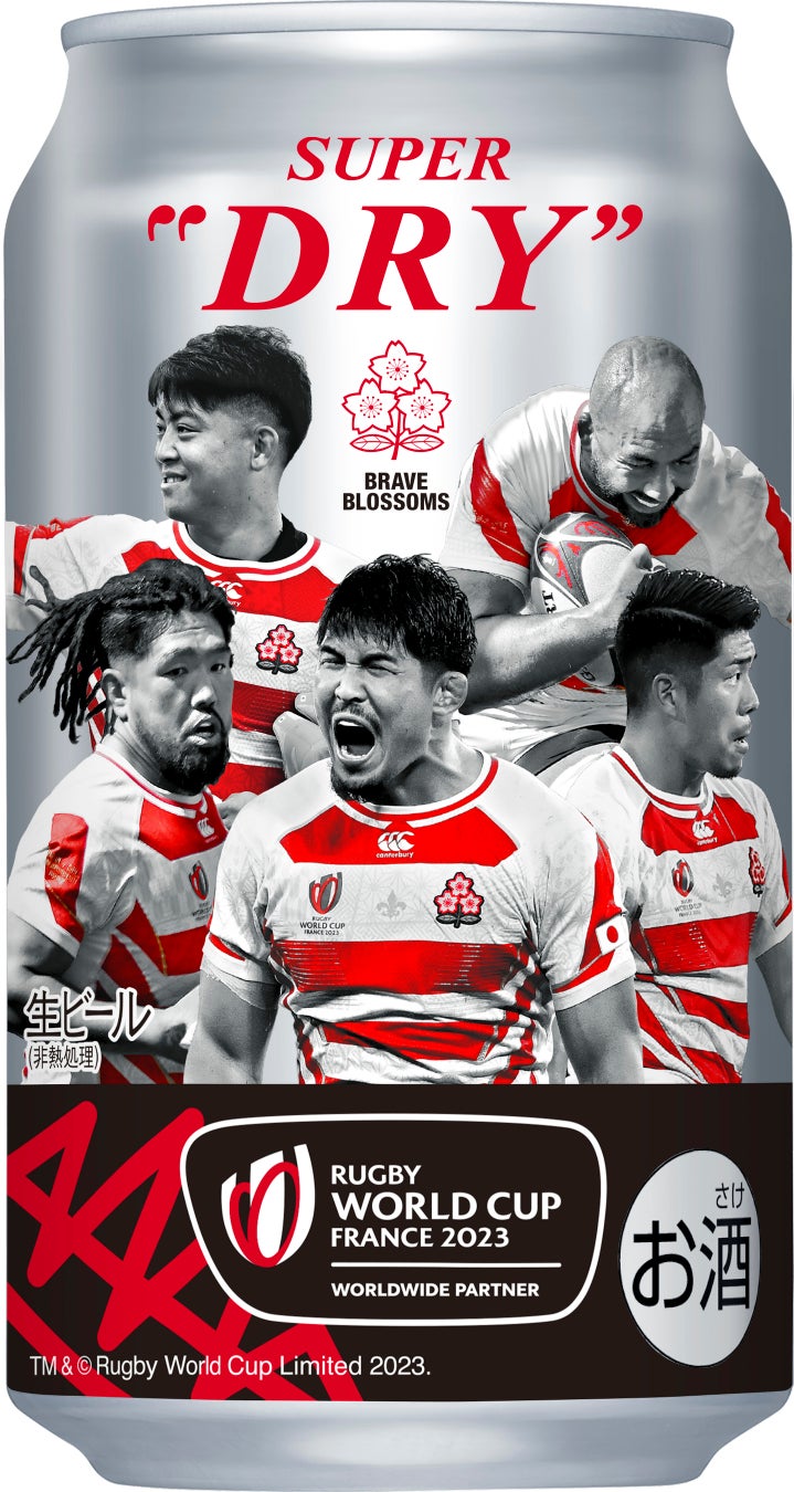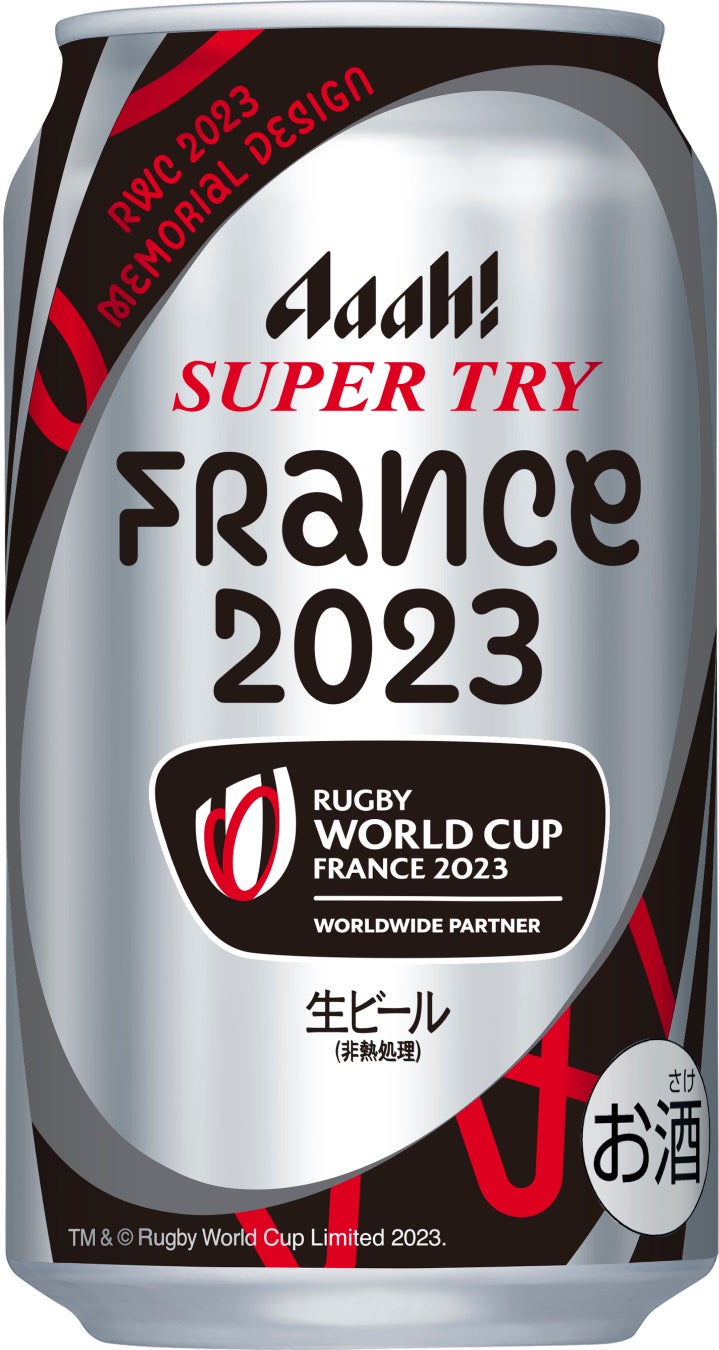 アサヒビールは、ラグビーワールドカップ2023フランス大会における「ワールドワイド・パートナー」としてオフィシャルビール「スーパードライ」を通じて盛り上げを図っています。フランス現地ではアルコール商品のロゴ掲出に規制があり、本大会の競技場のピッチ脇の広告は「Aaah!」「SUPER TRY」といったロゴを掲出しています。日本国内において通常の「Asahi」「SUPER DRY」と異なる広告に興味・関心が集まり話題となっています。今回、フランス現地で展開している「ロゴ」をTVCMやキャンペーンの景品である「デザイン缶」に採用することで、話題喚起と購入喚起を図ります。