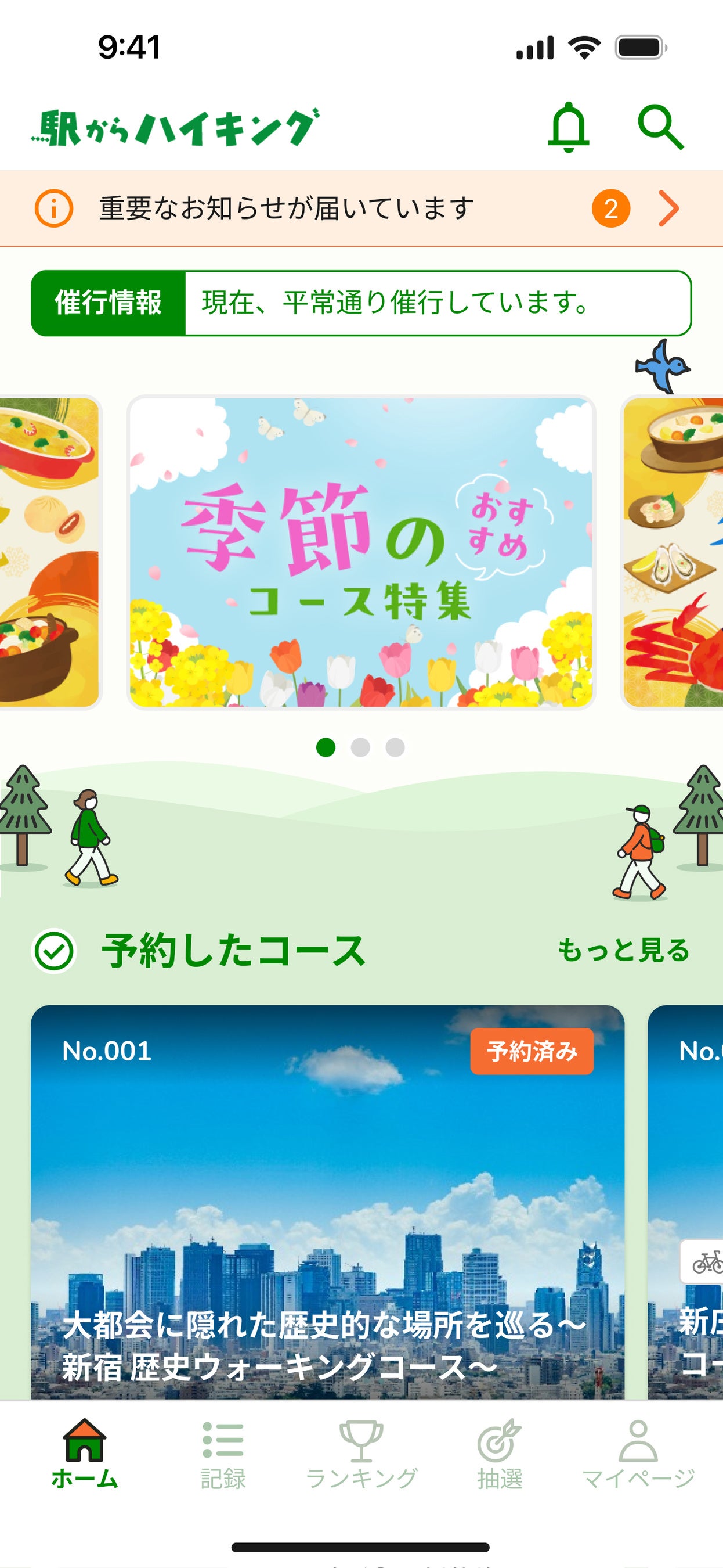 ・「今すぐ歩ける」コースをホーム画面から簡単に探せます。