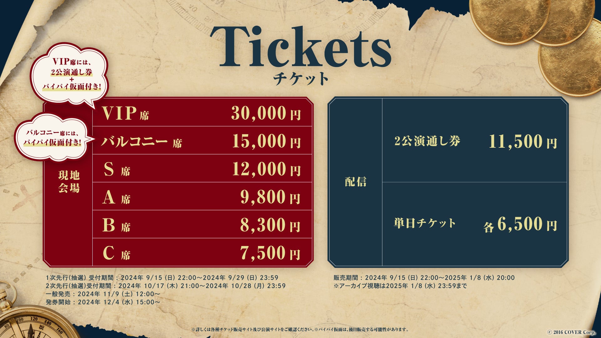 VIP席:30,000円(税込)(2公演通し券+パイパイ仮面付き)