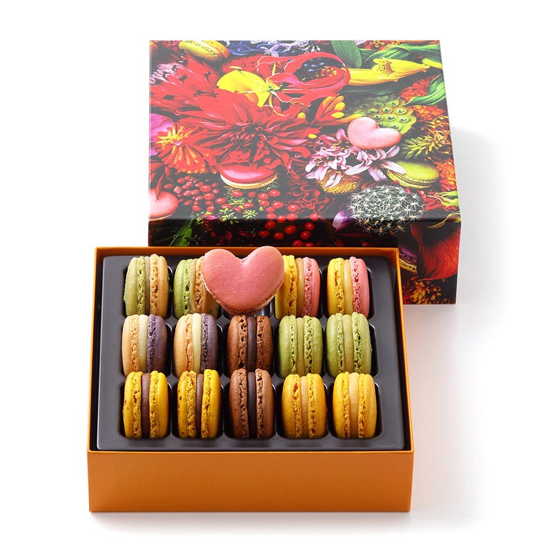 春の訪れを感じる華やかなマカロンをフラワーアーティスト東信さんによるアレンジメントを施した限定BOXで お届けいたします。
