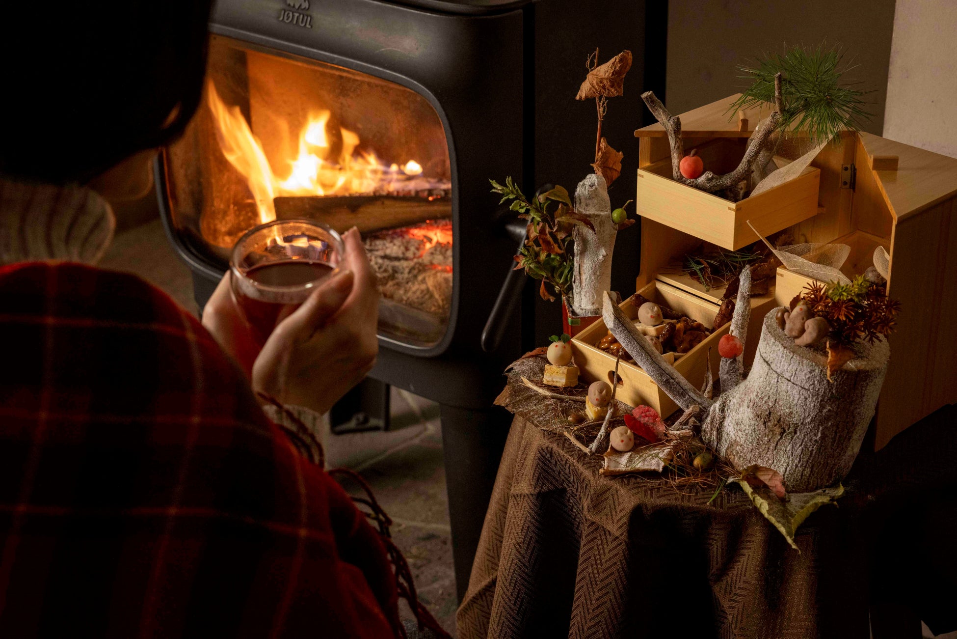 軽井沢野鳥の森の入り口には「ケラ池」と呼ばれる池があります。この池の畔に立つ「森のほとりCafe&Bar」は、夜は宿泊者専用のBarとなります。本プログラムでは森と水辺に囲まれたこの空間を貸し切りにし、木の実や、冬の森に暮らすノウサギやリスといった動物たちをイメージした特別菓子と信州ならではの果物や黒文字などのハーブをベースにした温かいカクテルを提供します。日中愉しんだ森に想いを馳せながら、暖炉の炎の揺らめきと、星明かりが織りなす、幻想的な夜の森で心安らぐひとときを過ごすことができます。