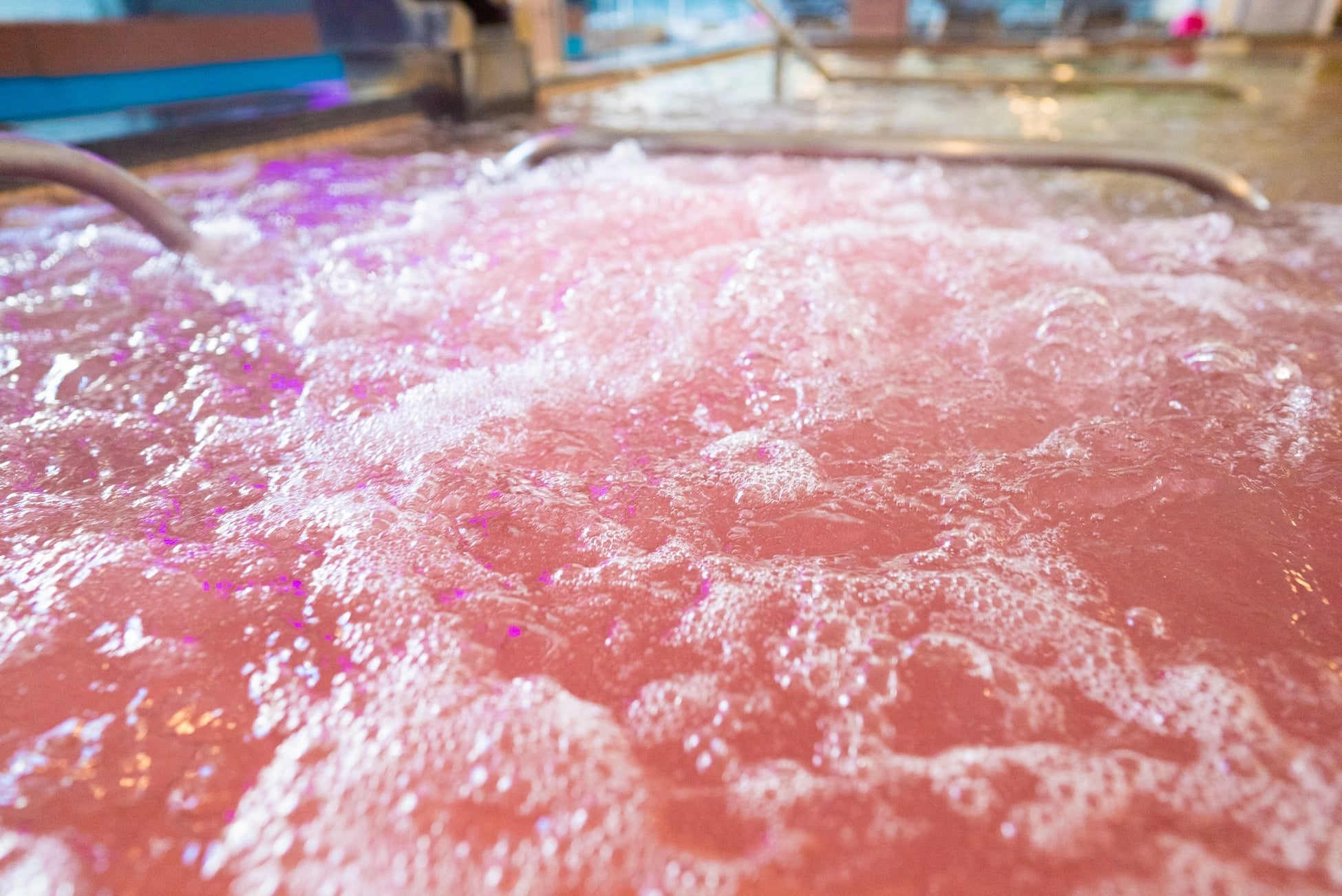 おふろcafe の大浴場に、一般家庭用の10〜20倍量のバブ入浴剤タブレットを、お客さまと一緒に投入します。38℃程度のぬるめのお湯にバブを入れてゆったり浸かる「ぬるめバブ浴」は、炭酸が入浴効果を高めて血行を促進、夏バテ感(※疲労感)を軽減します。