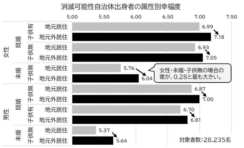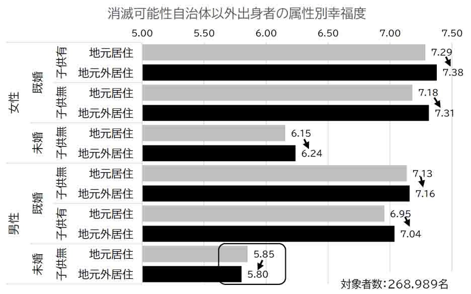 図2 消滅可能性自治体以外出身社の属性別幸福度