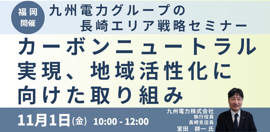 JPI(日本計画研究所)は、九州電力株式会社 執行役員 長崎支店長 室田 耕一 氏を招聘し、九電グループのカーボンニュートラル実現や地域活性化に向けた取り組みについて詳説いただくセミナーを開催します。