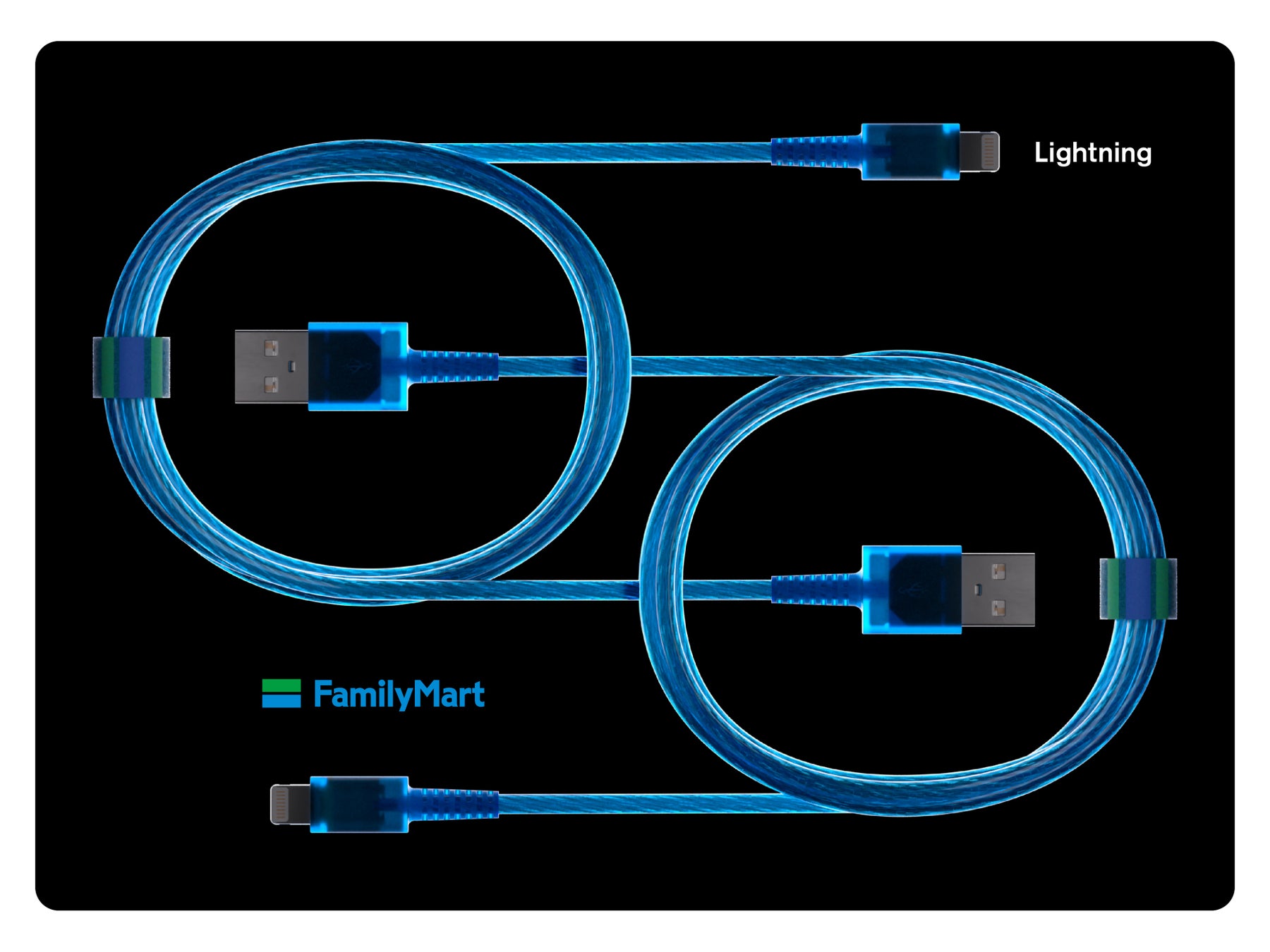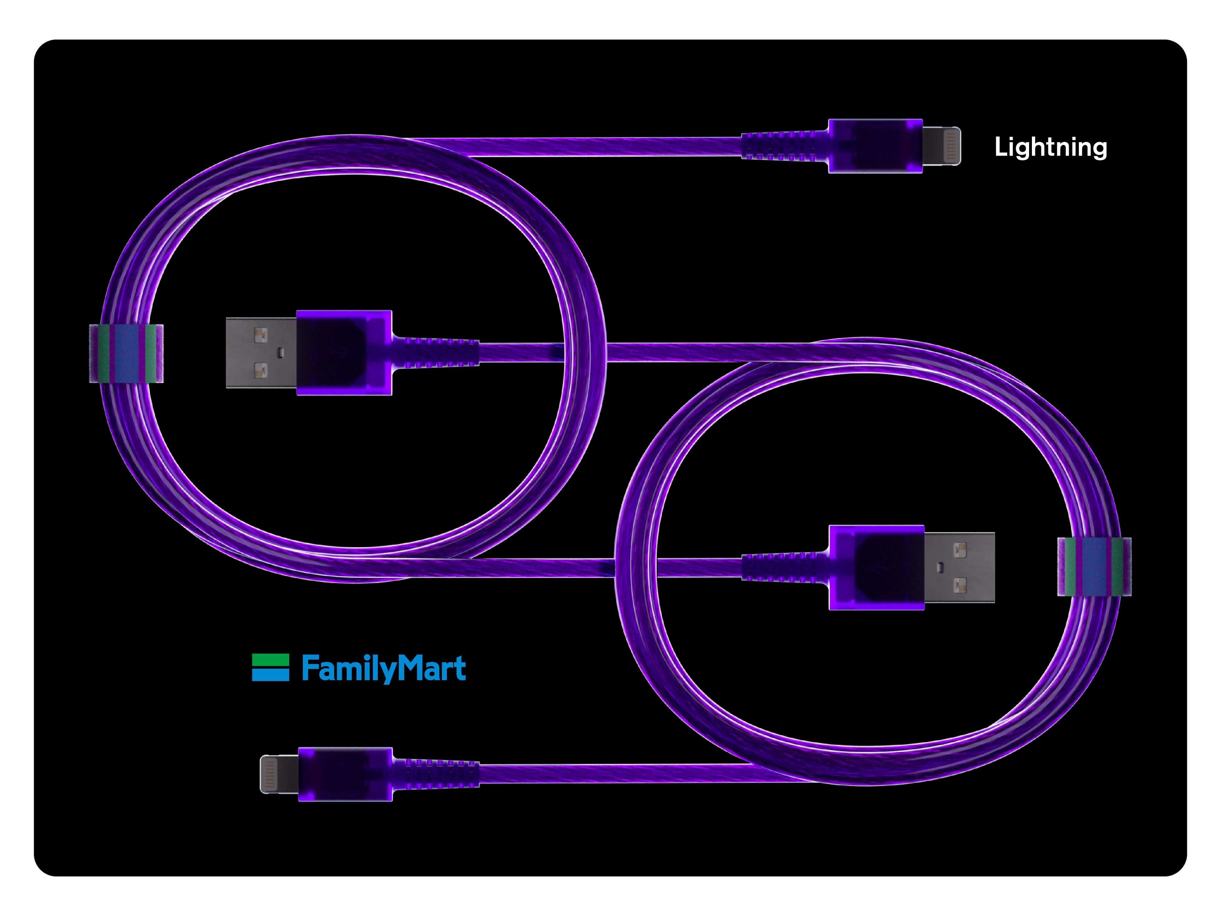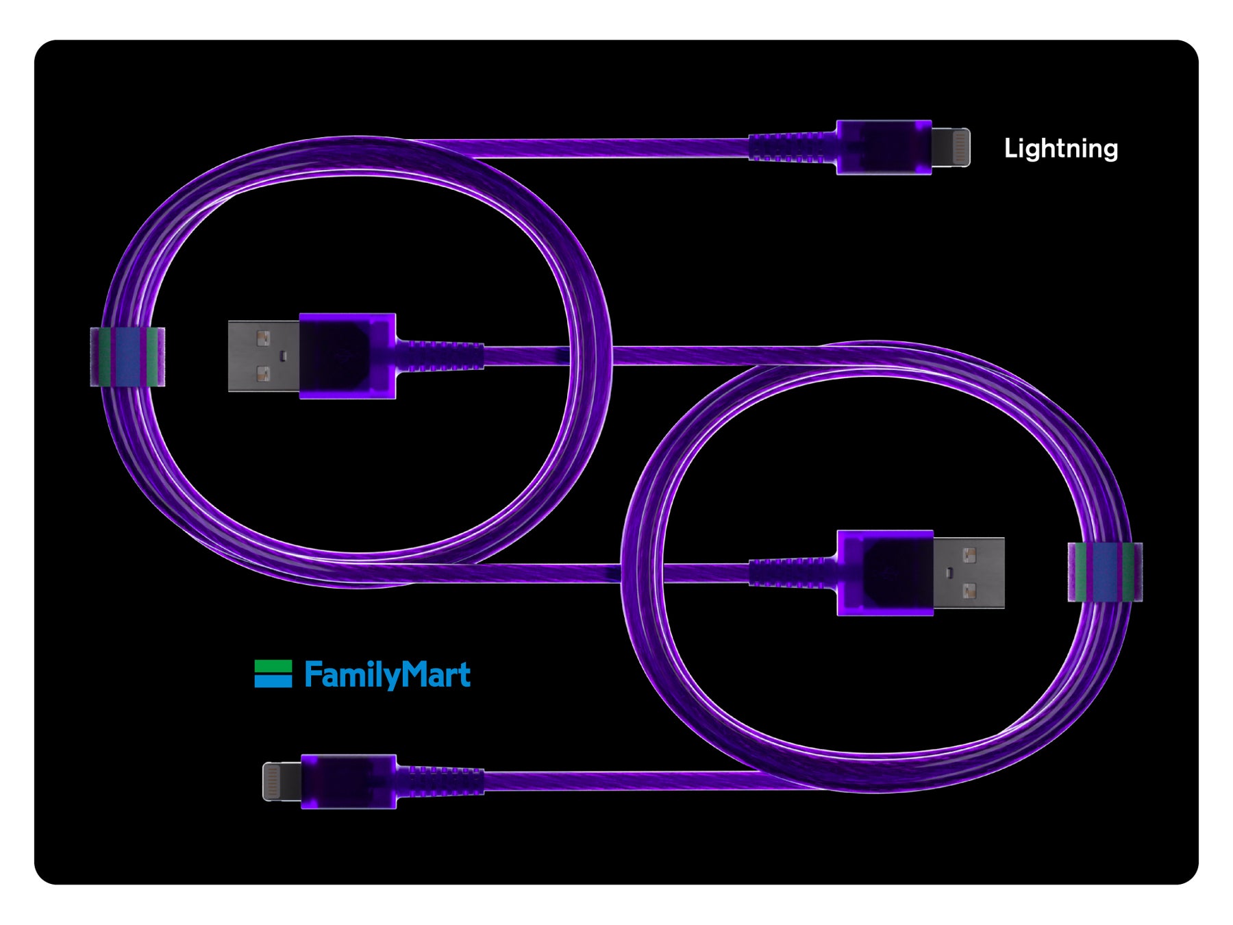 リニューアルからディレクターとして参加しご好評いただいているモバイルアクセサリー商品から、ファミリーマート限定のライトニングケーブル(クリアライム、クリアブルー、クリアパープル)、USB-Cケーブル(クリアオレンジ、クリアグリーン)のラインアップが展開されます。 クリアカラーのpopさが皆さまの生活のアクセントになるよう、身近なファミリーマートでいつでもお手に取っていただきたいです。