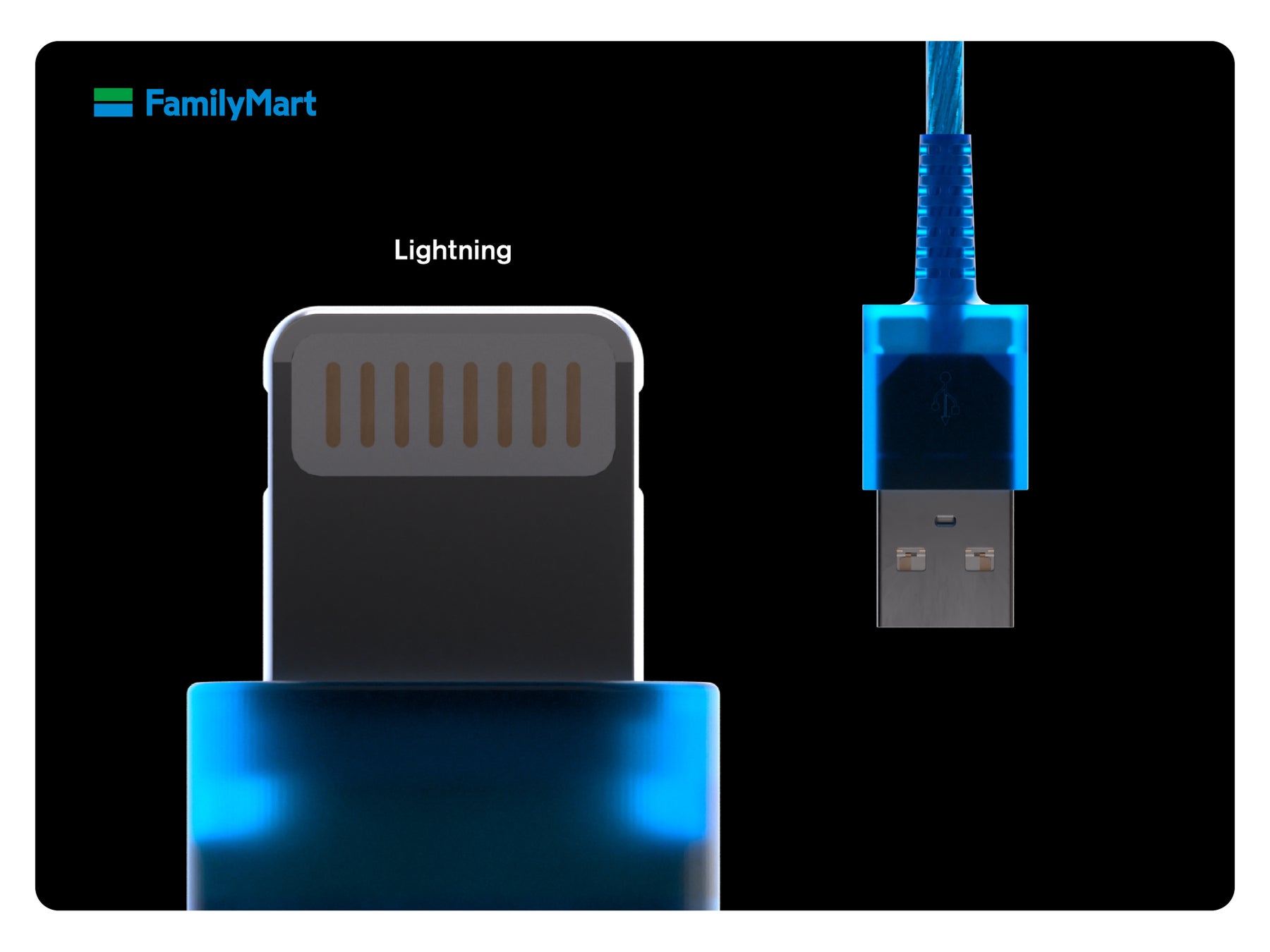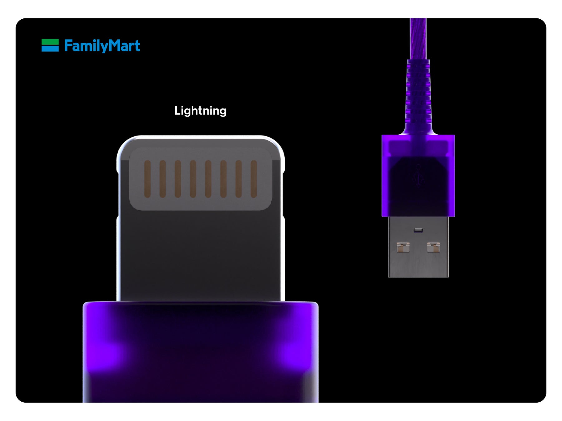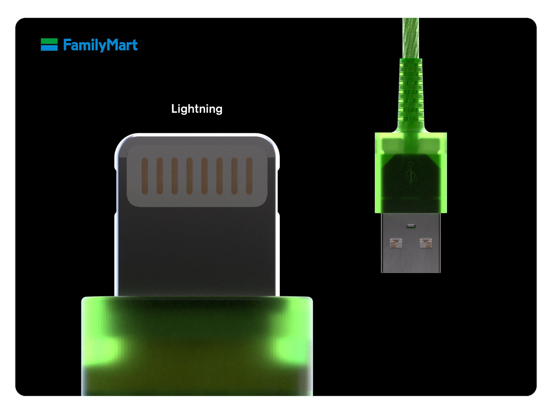 リニューアルからディレクターとして参加しご好評いただいているモバイルアクセサリー商品から、ファミリーマート限定のライトニングケーブル(クリアライム、クリアブルー、クリアパープル)、USB-Cケーブル(クリアオレンジ、クリアグリーン)のラインアップが展開されます。 クリアカラーのpopさが皆さまの生活のアクセントになるよう、身近なファミリーマートでいつでもお手に取っていただきたいです。