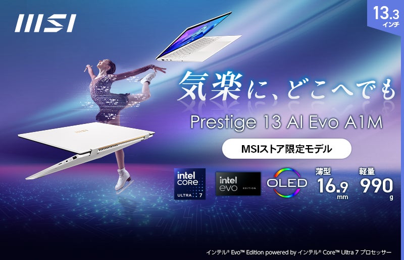32GBメモリ搭載でサクサク高速動作!!軽さ990gで気軽に持ち運べる13.3インチパワフルビジネスノートPCMSIストア限定モデル「Prestige-13-AI-Evo-A1MG-0451JP」発売