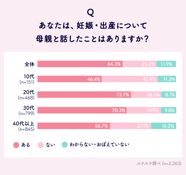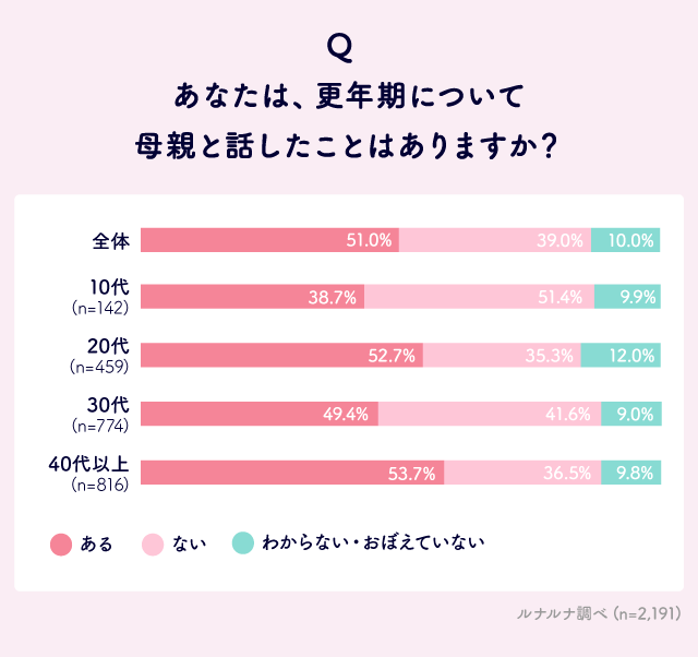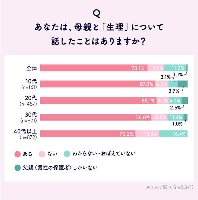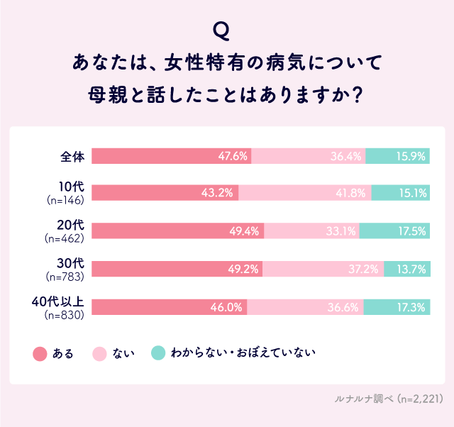 Q. あなたは、母親と「生理」「妊娠・出産」「女性特有の病気」「更年期」について話したことはありますか?