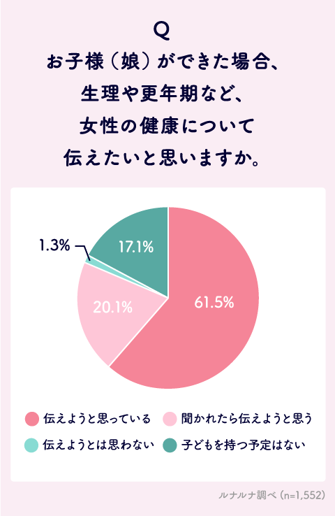 Q.お子様(娘)ができた場合、生理や更年期など、女性の健康について伝えたいと思いますか。