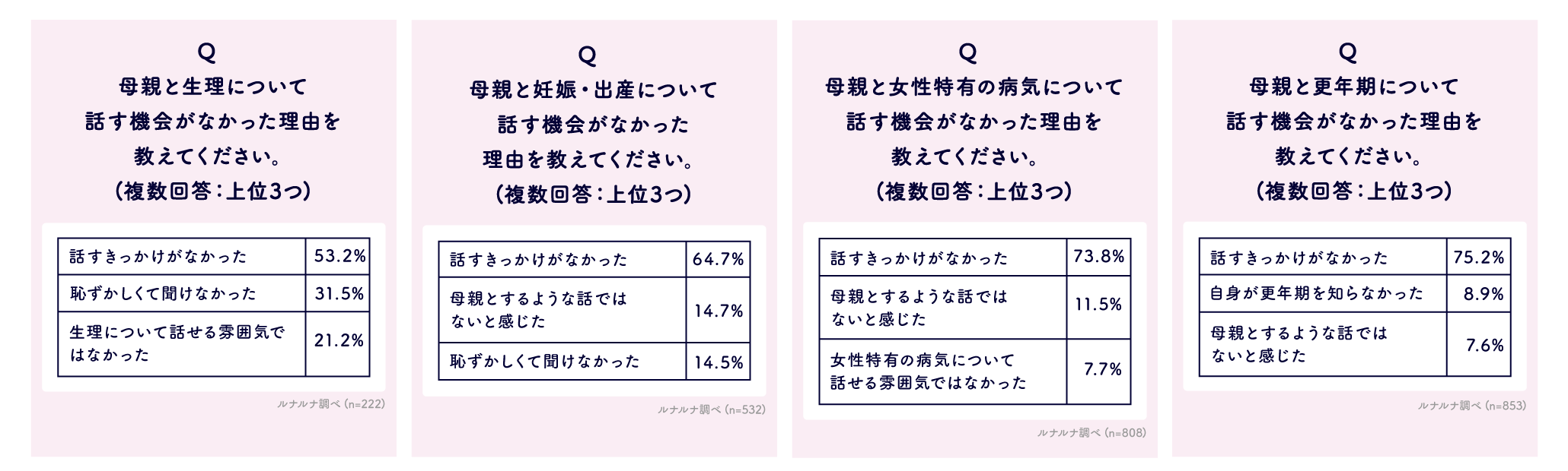 Q.母親と「生理」「妊娠・出産」「女性特有の病気」「更年期」について話す機会がなかった理由を教えてください。(複数回答)
