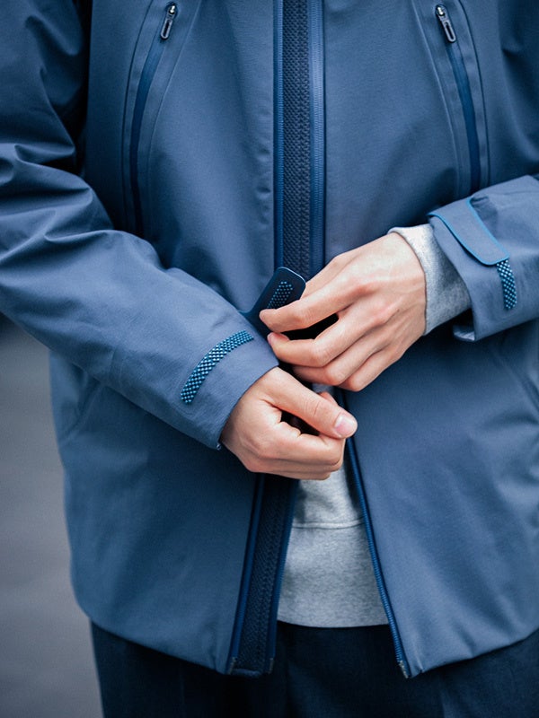 表地をDermizax(R)素材にアップデートすることで、耐水性と透湿性のさらなる向上を追求した本モデル。デサント独自のデュアルベンチレーションシステムを装備したフロントジッパーやフードへの水たまりを防ぐパラフードシステム、外気を取り込み、衣服内にこもりやすい不快な熱や湿気を逃がすことが可能な設計をしているなど、オールテレーンの名に相応しいハイスペックなアウター。それに加え、他にはない別注カラーが、単にハイスペックだけでは終わらない都会的な雰囲気を演出してくれます。