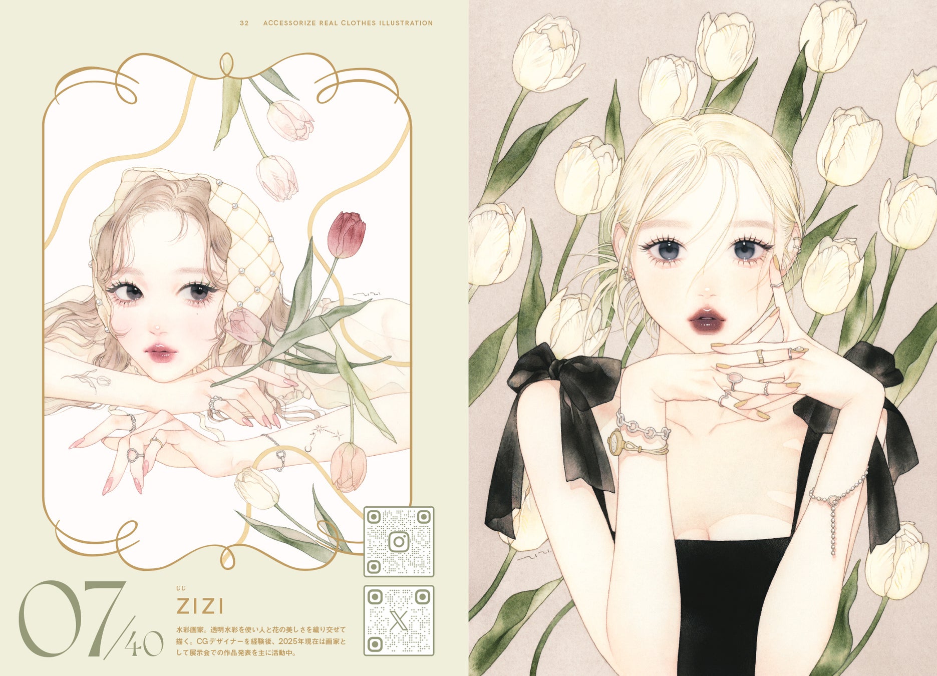 『アクセサライズ リアルクローズ イラストレーション』はファッションアクセサリーを魅力的に描くクリエイター40名と、その作品を紹介する作品集です。