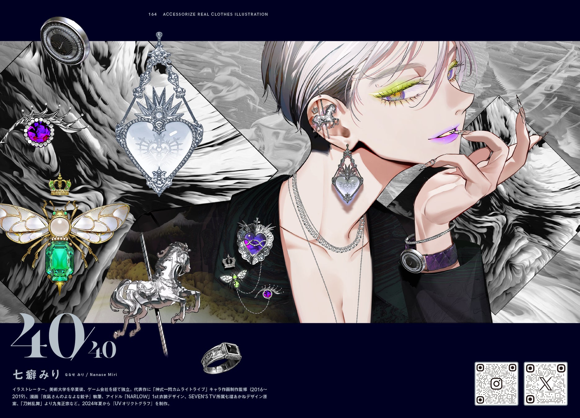書籍巻末ではアクセサリーの図解コラムや、各クリエイターによる、ファッションにまつわるコメントの他、気になったクリエイターのSNSアカウントをすぐにフォローできるX・InstagramのQRコードも収録。