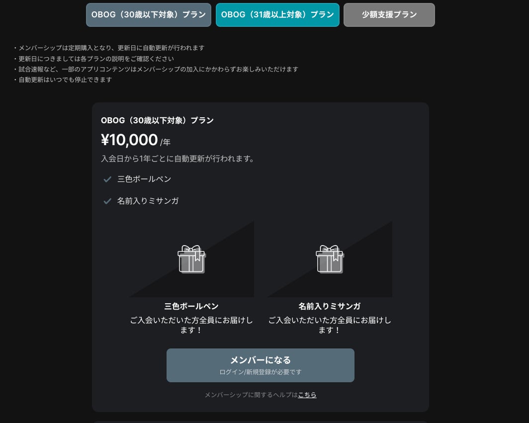 OBOG(30歳以下対象)プラン/OBOG(31歳以上対象)プラン/少額支援プラン