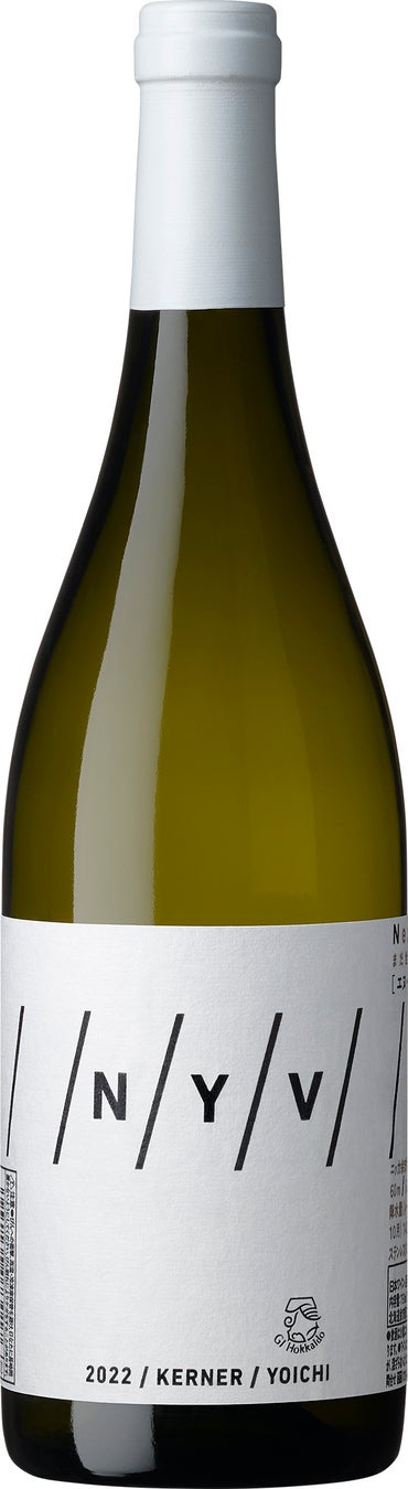 『エヌ・ワイ・ブイ余市ケルナー 2022』は、北海道余市町の自社畑で栽培し、2022年に収穫したケルナー品種を100%使用した日本ワインです。リンゴや洋ナシのようなフルーティな香りが広がり、すっきりとした酸味と心地よいかすかな苦みが調和した味わいが特長です。商品名である「エヌ・ワイ・ブイ」は商品コンセプトである“まだ世にないワインの可能性を、余市から=Next Yoichi Value”の頭文字を取りました。ラベルは、余市の雪を表現する白色をベースに、商品名である「N・Y・V」と、余市の豪雪に耐えるためにぶどうの樹を斜めに植樹する栽培方法を表現した“/”をデザインしました。