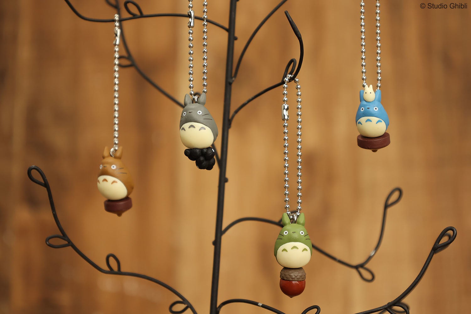 小さいながらも精巧に作りこまれた造形と彩色のボールチェーン付きマスコットは、どれも集めたくなるアイテムです。また、ボールチェーン付きマスコットが入っているカプセルには、ほわっとした手触りのフロッキー加工がされていて、目の動きが異なるマックロクロスケが4種類、小トトロが1種類と持ち帰っておうちに飾りたくなる愛らしさです。