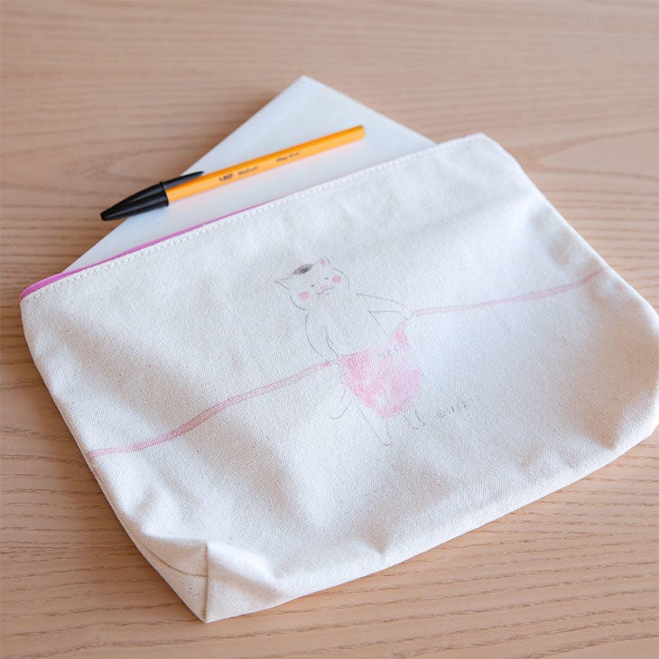 猫村さんのイラストが可愛い、A5サイズのノートが入るシンプルなポーチ。