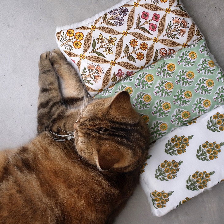 インドのハンドブロックプリントの生地を使用したキャリーマット。花柄で楽しいパッチワークタイプでふかっと柔らかい感触。