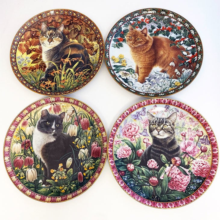 レズリーアンアイボリーのグッズをご紹介。英国Danbury Mint(ダンバリーミント)の、猫と四季がテーマのプレート。春(デラボール)・夏(クリスティ)・秋(リンファスキャット)・冬(ダンデライオン)の4種類。