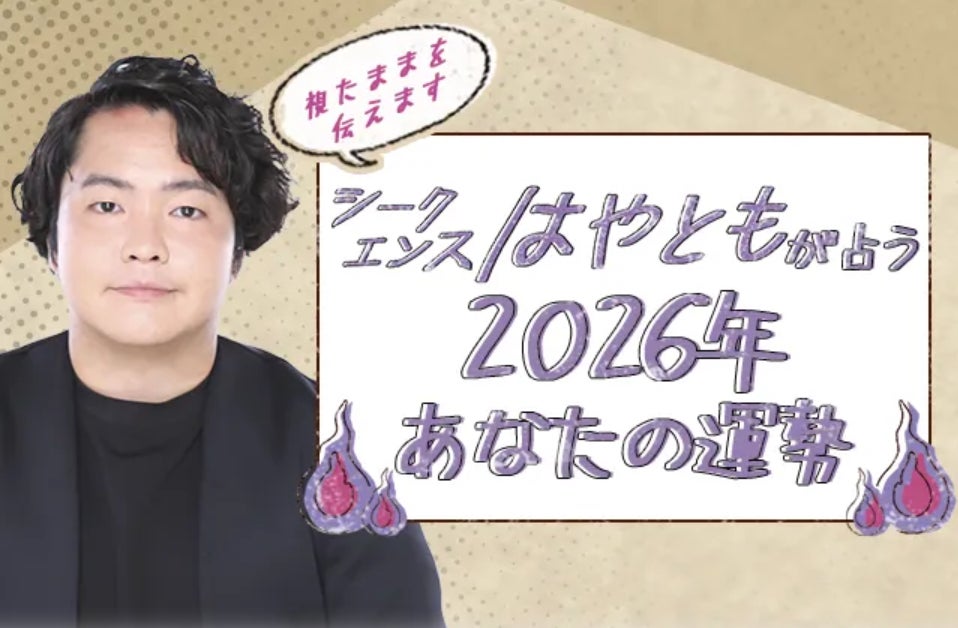 「この人ほんとに視えてる…」人気俳優も芸人仲間も絶句→驚嘆。背筋ゾクッとするほど「現実」当て尽くす“視え過ぎる”霊視芸人・シークエンスはやともの公式占いサイト『シークエンスはやともの占い』は、この度「シークエンスはやともが視る2026年の運勢」を一般向けに公開いたしました。まだ当サイトへの会員登録がお済みでないお客様でも2026年の運勢を占っていただけるページとなっております。