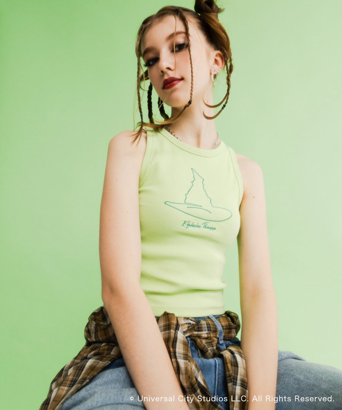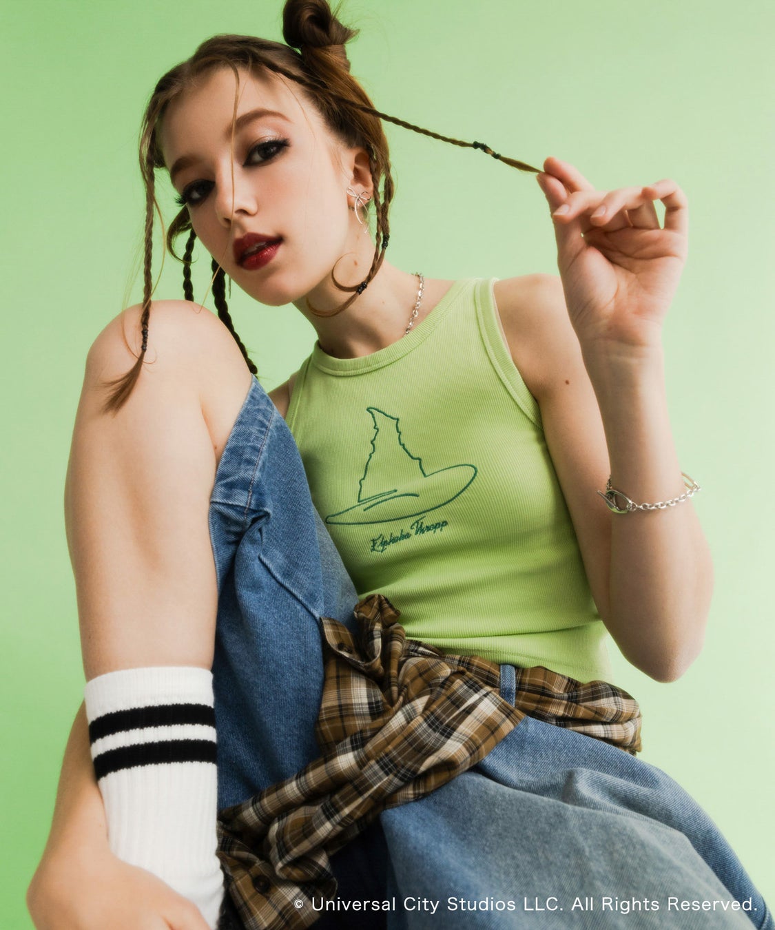 ウィキッドから着想を得たカラーとワンポイントロゴがポイントのタンクトップ。コンパクトなサイズ感で、インナーとしてはもちろん、トップスとして1枚で着るのがおすすめのアイテムです。