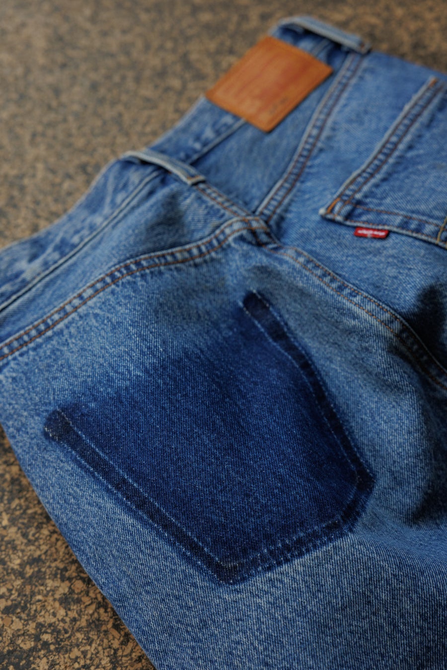 また、通常 Levi’s®では展開がない、バックポケットを片方なくした古着ようなディテールもポイントの一つ。501® 特有のシュリンクトゥフィット素材を使用し、通年コーディネートしやすい中濃インディゴカラーで制作しました。