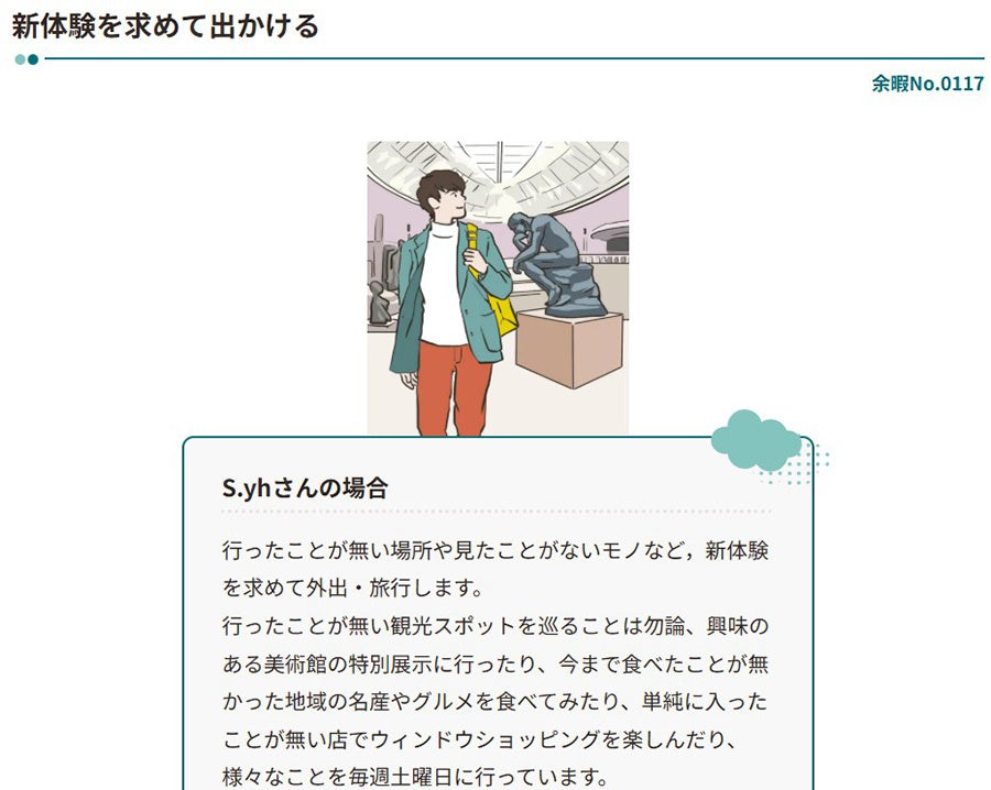 当社と静岡大学は、「人生を楽しむための余暇図鑑」をより多様な人々の余暇の過ごし方・生き方を紹介する内容へと拡充すべく、ヤマハ発動機に協力を要請。これに応じたヤマハ発動機から従業員36名の余暇の楽しみ方が提供されたものです。