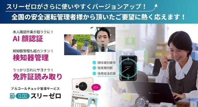 「AI顔認証」「検知器管理」に加え、「免許証読み取り」などの機能を拡充 安全運転管理者の管理業務効率化を支援