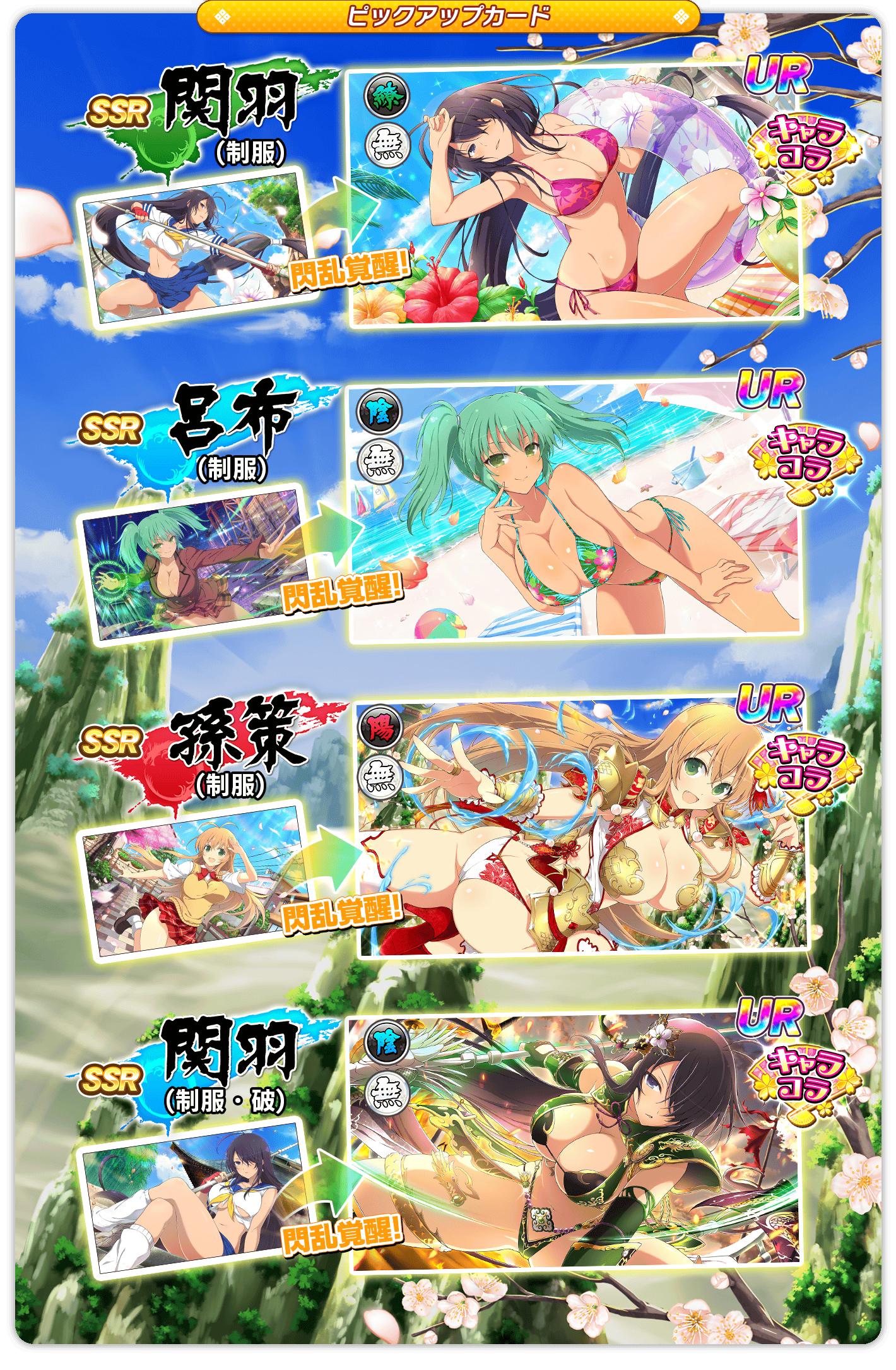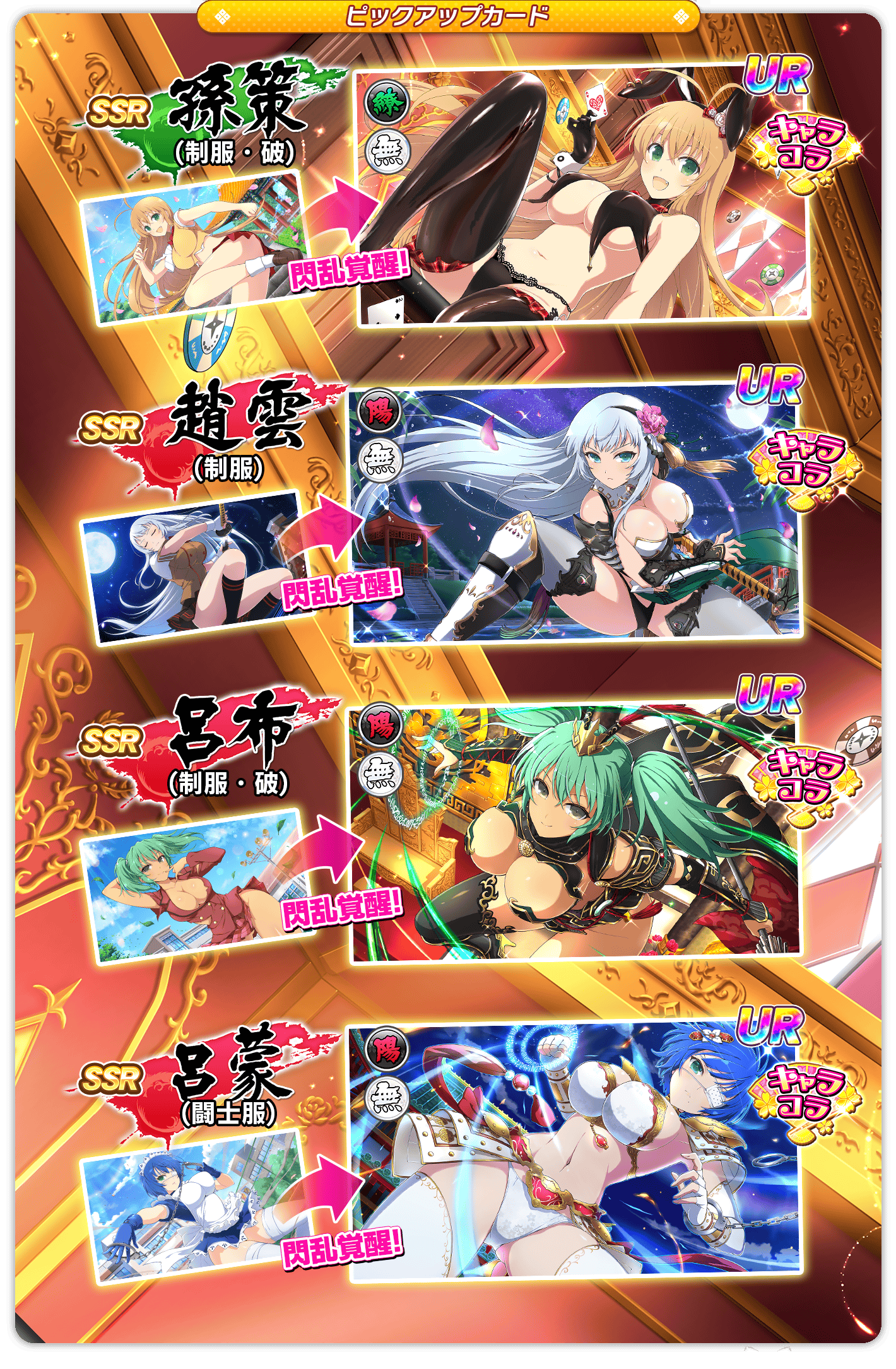 さらに「孫策」の新カードも登場し、「趙雲」「呂布」「呂蒙」の爆乳祭限定カードもあわせて再登場いたします!