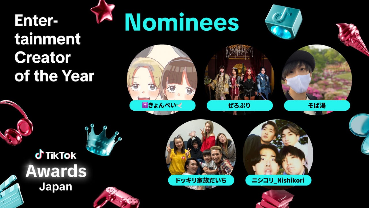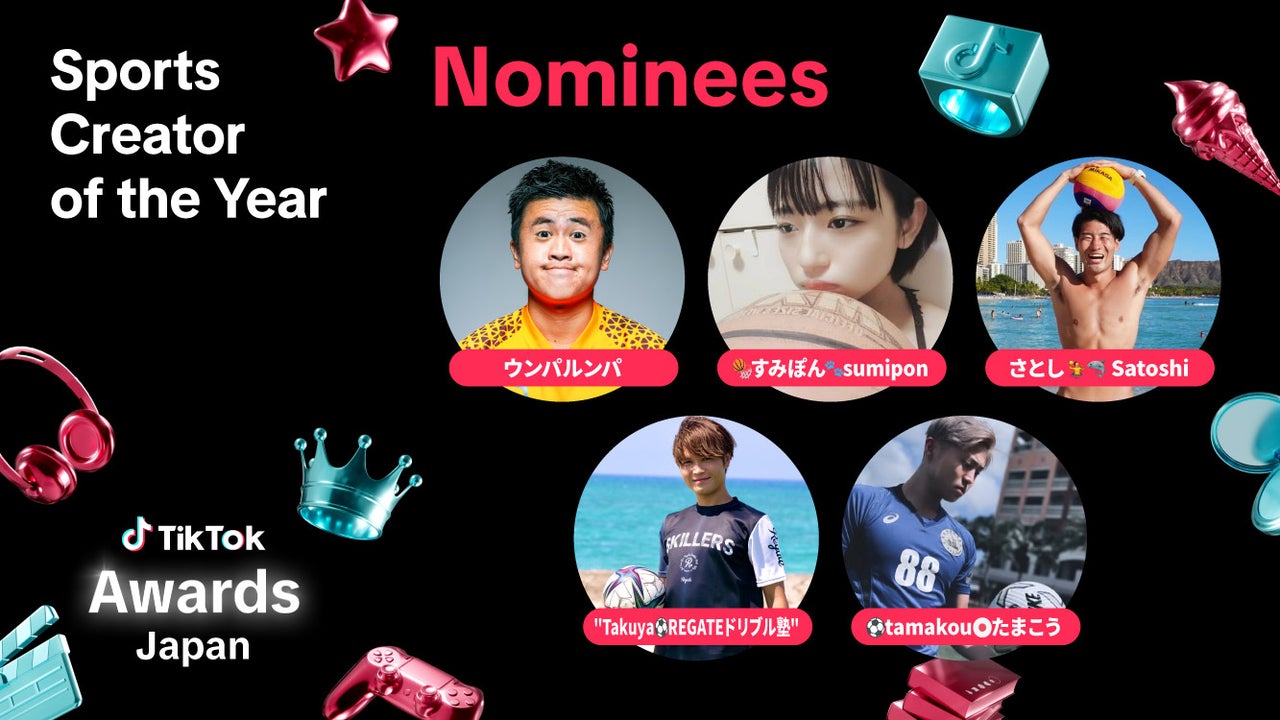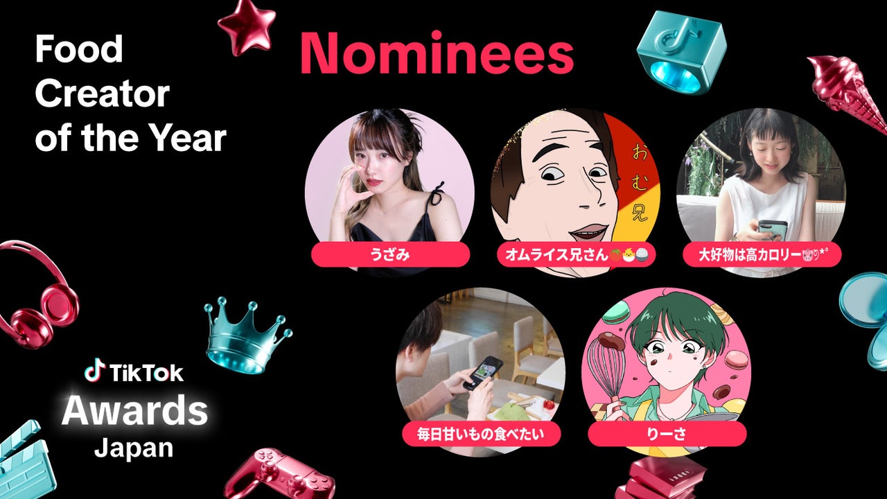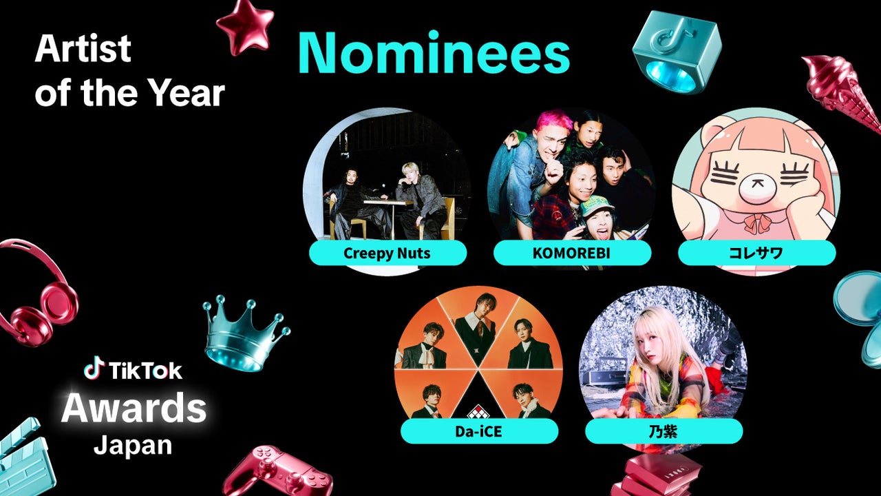 ノミネートの発表はありません。動画投稿数、再生数、いいね数やその他アプリ内のデータなどを基に総合的に判断してTikTok Japanにて決定、12月5日(木)開催の「TikTok Awards Japan」2024にて発表します。