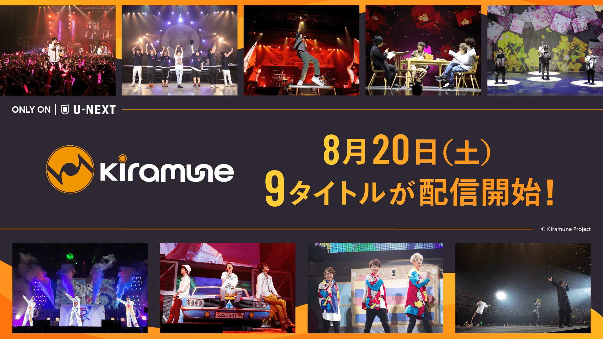 USEN-NEXT GROUPの株式会社U-NEXT(本社:東京都品川区、代表取締役社長:堤 天心)が運営する動画配信サービス「U-NEXT」は、人気男性声優が多数参加する「Kiramune(キラミューン)」レーベル第3弾ラインナップとして、2022年8月20日(土)より9作品を独占配信いたします。また10月29日(土)には第4弾として新たに8作品が加わり、U-NEXTで配信する「Kiramune」レーベル作品は計38作品となります。