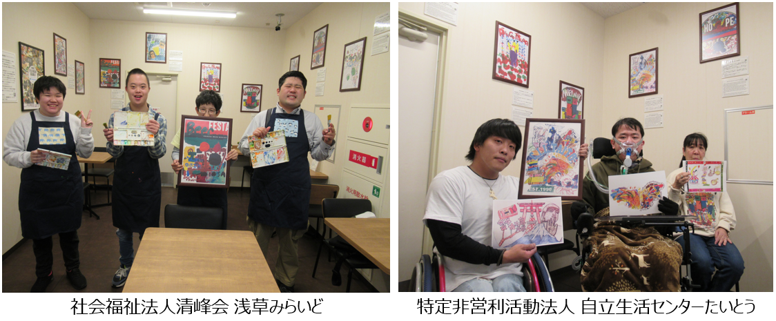 「個性溢れる作品が、様々な方にご覧いただける機会があることで、描いている本人達のモチベーションが高まり、今後もより一層作品作りに取組んでいけると思います。」(自立生活センターたいとう)