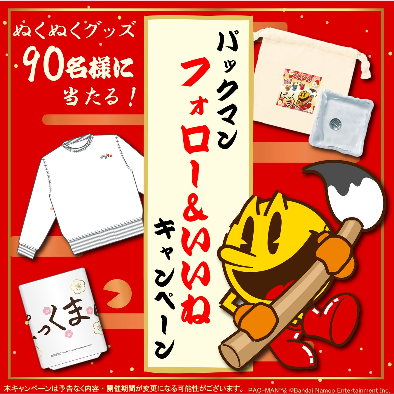 株式会社バンダイナムコエンターテインメントは、「パックマン」公式インスタグラムアカウントにて「パックマン2024年お年玉キャンペーン」を実施いたします。