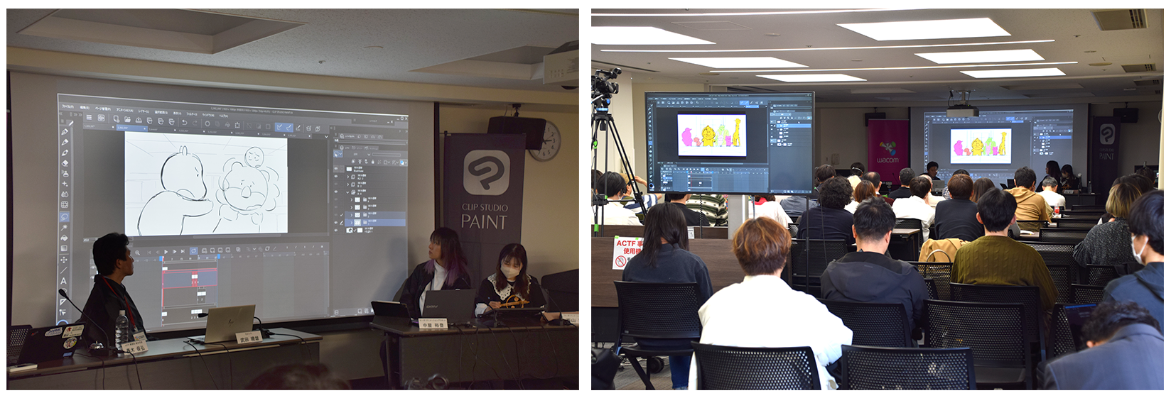 セルシスは、アニメーションのデジタル制作技術に関するシンポジウム「ACTF2026 in TAAF」を、3月14日(土)・15日(日)にJAniCA・ワコムと共催し、セミナーや「CLIP STUDIO PAINT Ver.5.0」の体験展示などを行いました。セミナーでは、セルシスとマーザ・アニメーションプラネット株式会社による、「たべっ子どうぶつ THE MOVIE」を作例とした「CLIP STUDIO PAINT」の活用事例を紹介しました。