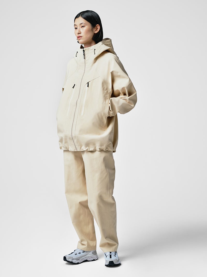 素材:<表地>表側:分類外繊維(Brewed Protein™)60%、ウール25%、ナイロン15% / 中間層:PTFE / 裏側:ポリエステル100%