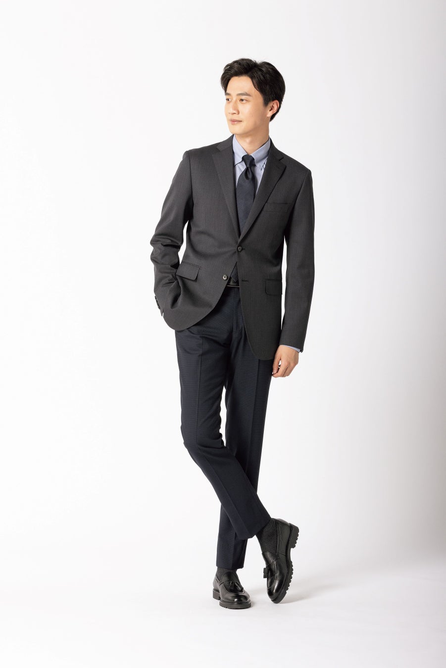 ビジネスパーソンにとってスタンダードであるセットアップスタイルはもちろん、ジャケットやパンツはそれぞれ単品でも着用でき、さらにTシャツやセーター、他のパンツ等と組み合わせることで着こなしの可能性が大幅に拡がります。また、ご自宅で洗えるためとても経済的です。
